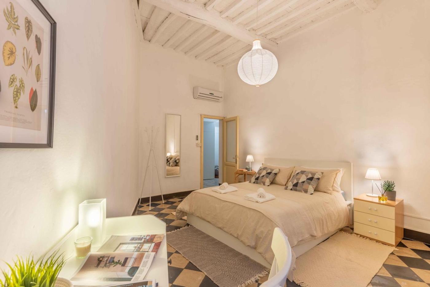 Questo appartamento comprende 1 camera da letto, un soggiorno, una cucina con utensili, frigorifero e macchina da caffè, e 2 bagni con bidet e doccia. Presso questo appartamento troverete asciugamani e lenzuola a disposizione.