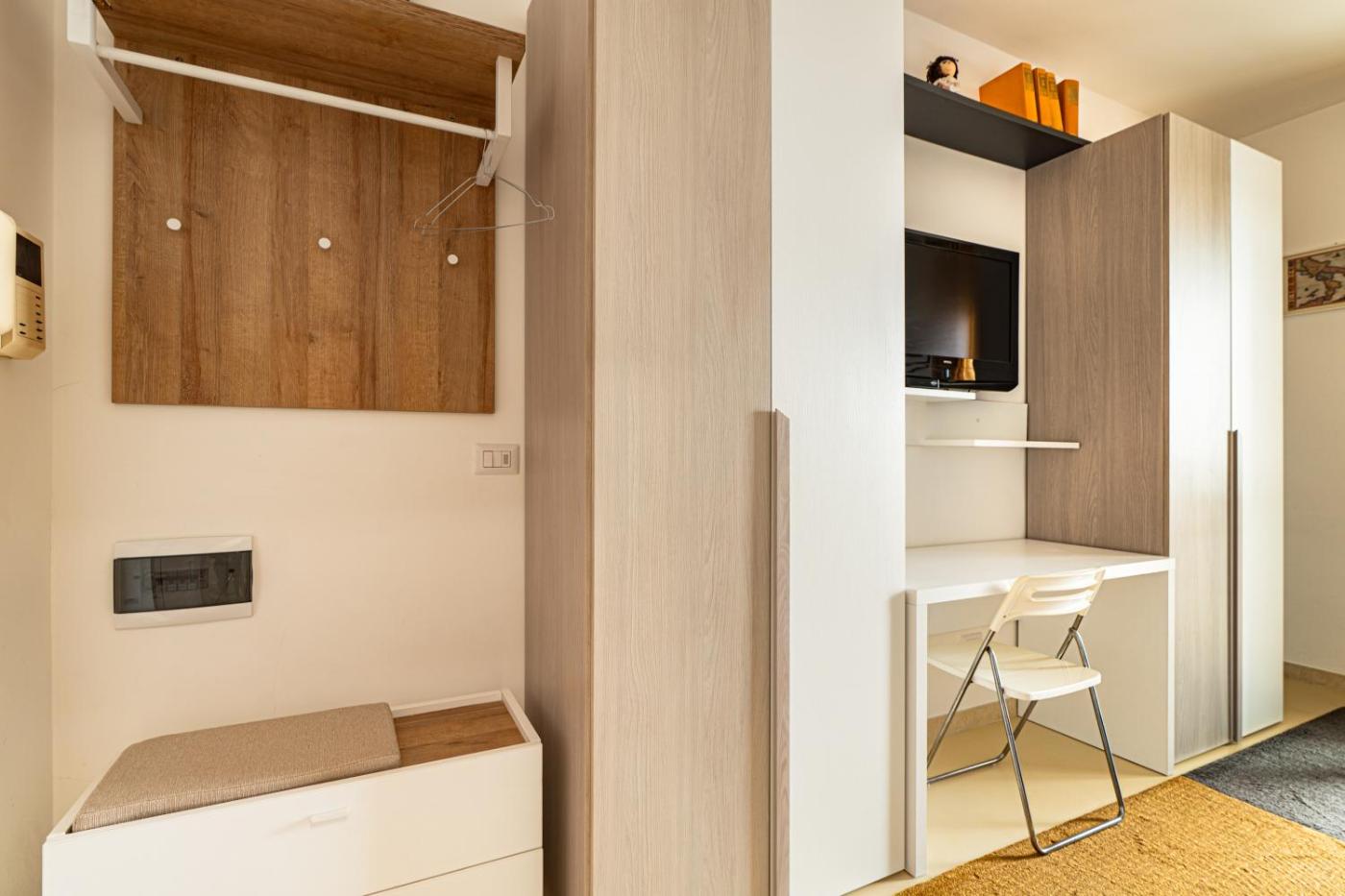 Monolocale. The studio features a private bathroom, air conditioning, a washing machine, as well as a seating area with a flat-screen TV. The fully equipped kitchenette has a stovetop, a refrigerator, kitchenware and an oven. Featuring a balcony, this studio also provides a wardrobe, heating and a TV. The unit offers 1 bed.