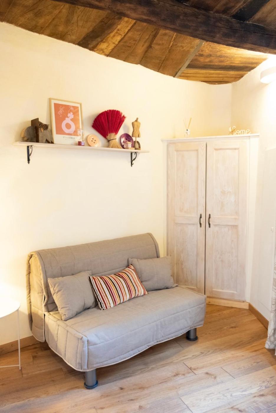 Questo appartamento comprende 1 camera da letto, un soggiorno, una cucina con utensili, frigorifero e macchina da caffè, e 2 bagni con doccia edi cortesia. Presso questo appartamento troverete asciugamani e lenzuola in dotazione.
