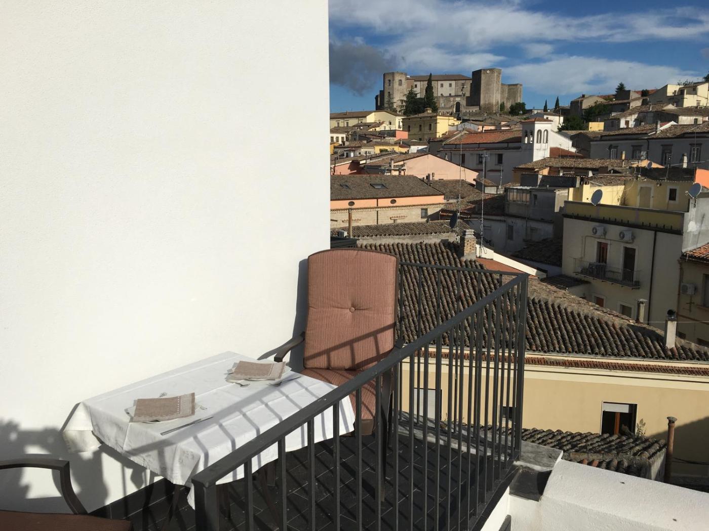 Camera Matrimoniale Deluxe con Terrazza. Camera matrimoniale climatizzata con TV via cavo a schermo piatto, bagno privato e balcone affacciato sulla cittĂ . Lâalloggio presenta 1 letto. ;