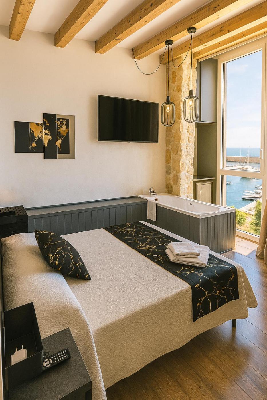 Suite With Bathtub. Featuring a private entrance, this air-conditioned suite consists of 1 bedroom and 1 bathroom with a bath and a shower. This suite features a minibar, flat-screen TV with streaming services, sea views, as well as winechampagne for guests. The unit offers 1 bed. ;