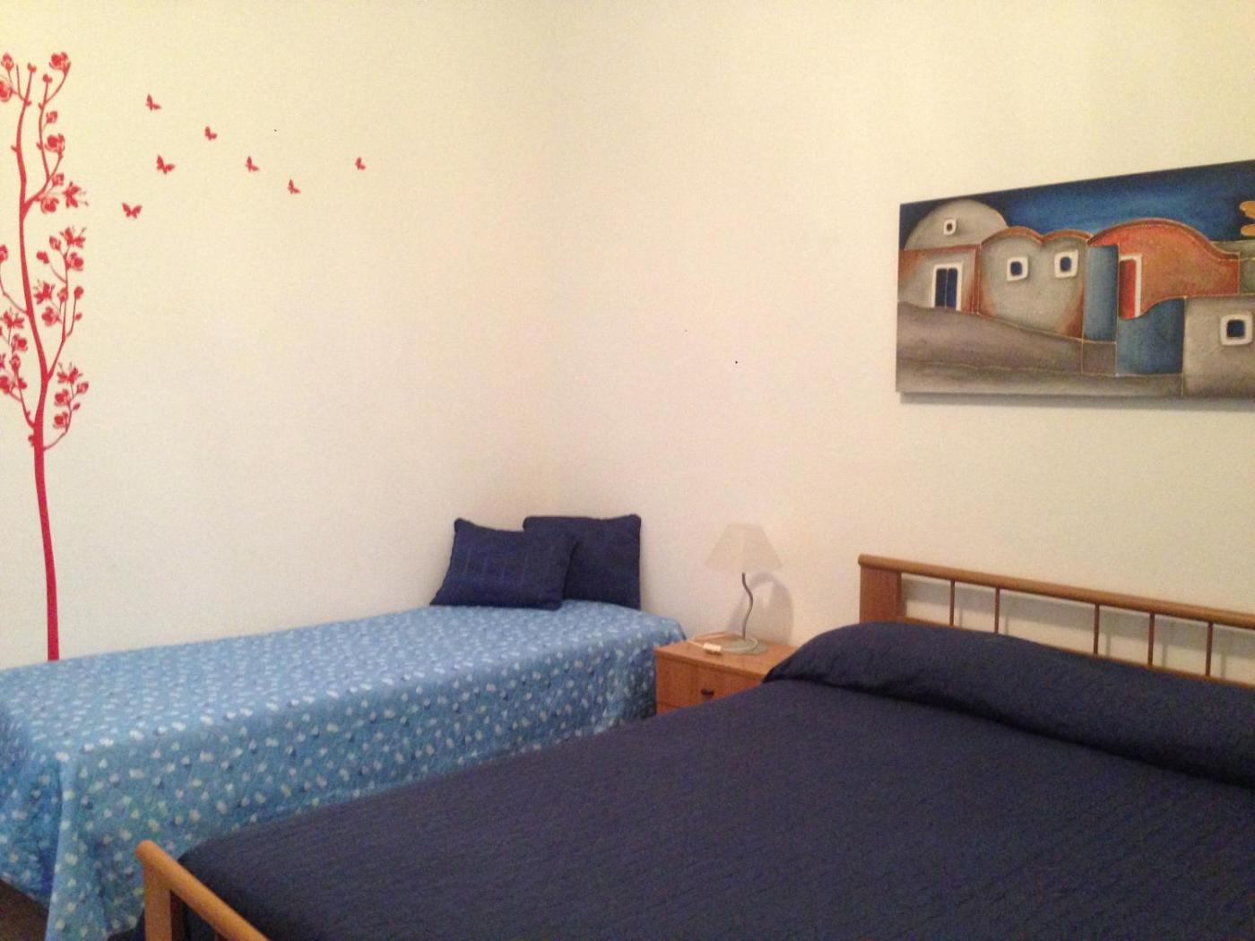 Camera Tripla Standard. Questa camera tripla climatizzata include un ingresso indipendente, una terrazza con vista sul giardino e un bagno privato con doccia. L’alloggio presenta 2 letti. ;