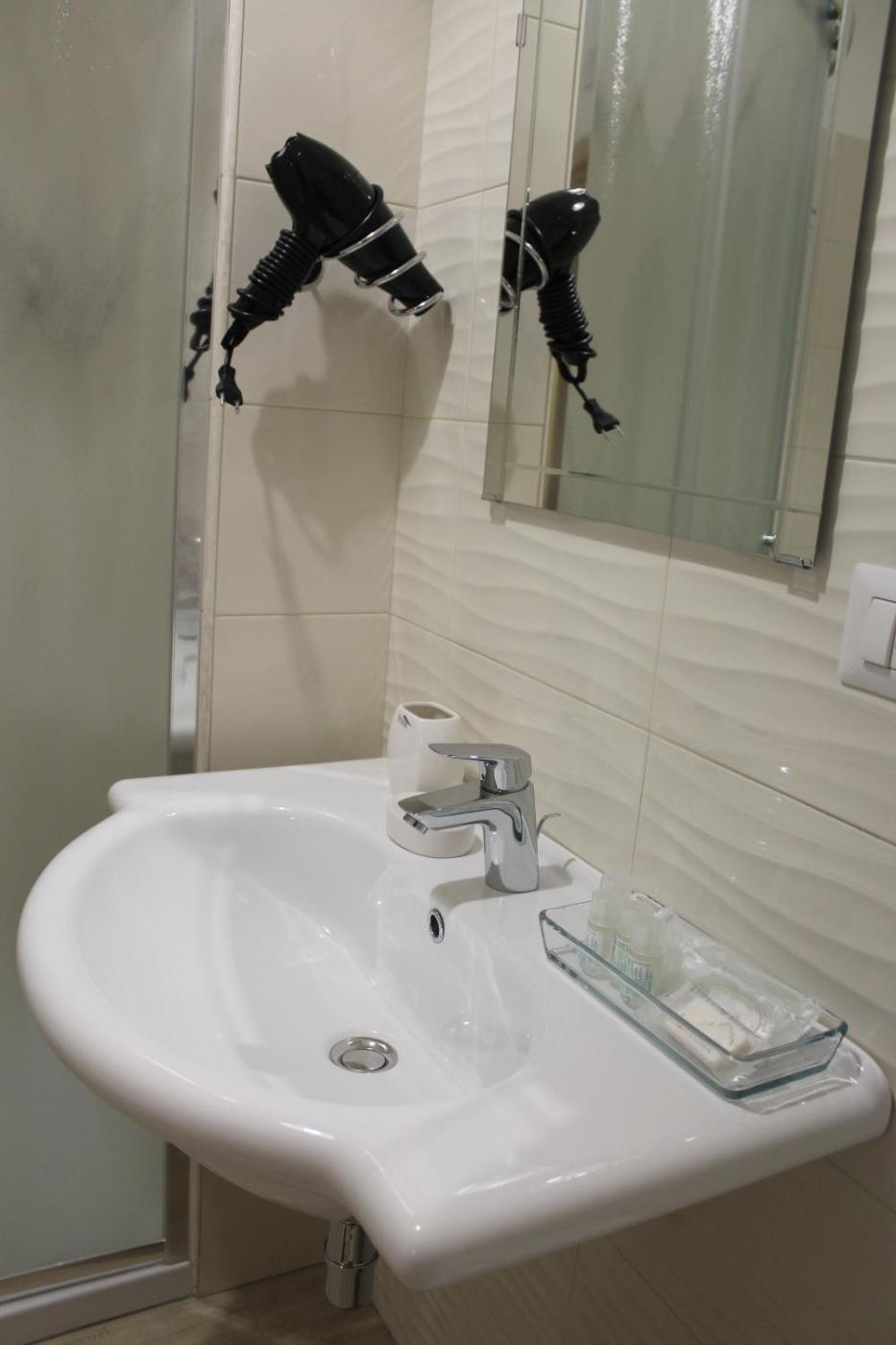 Camera Tripla Comfort con Doccia. Providing free toiletries and bathrobes, this triple room includes a private bathroom with a bath, a shower and a bidet. The air-conditioned triple room provides a flat-screen TV, a minibar, a tea and coffee maker, a wardrobe as well as a quiet street view. The unit offers 2 beds. ;