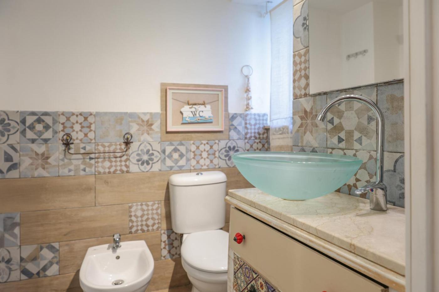 Questa casa vacanze con aria condizionata comprende 1 camera da letto, un soggiorno, una cucina con utensili, frigorifero e macchina da caffè, e 2 bagni con bidet e doccia. Presso questa casa vacanze troverete asciugamani e lenzuola in dotazione.